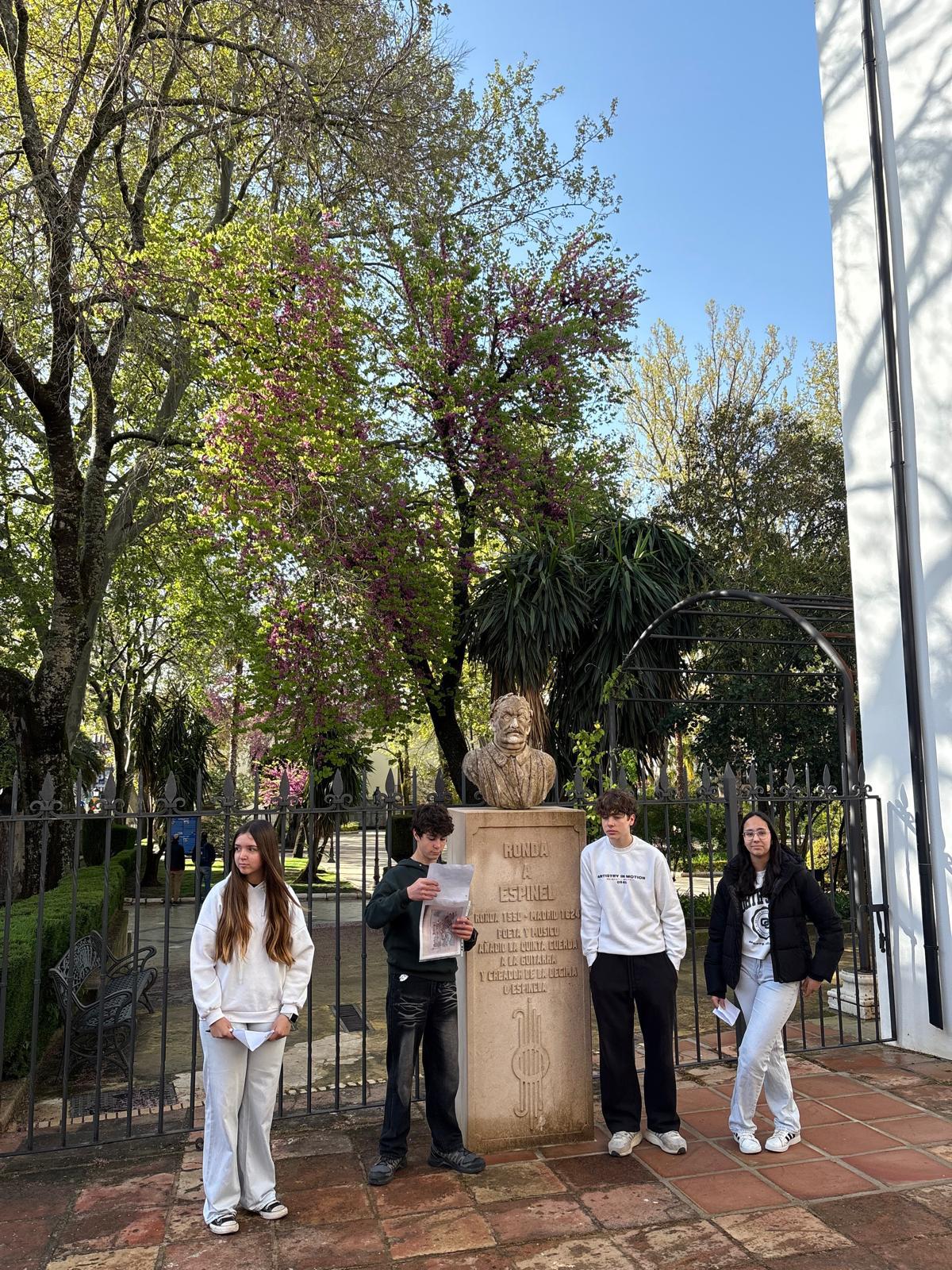 Completada la 1ª fase de este ilusionante proyecto de innovación que emprendemos con 2° ESO en este curso. Nuestros alumnos/as han investigado la conexión de autores/as de la Literatura con la Historia de Ronda. Esta 1ª fase concluye con el trazado de la ruta que conecta a estos autores/as con lugares emblemáticos de nuestra ciudad en los que los alumnos han expuesto el resultado de sus investigaciones.